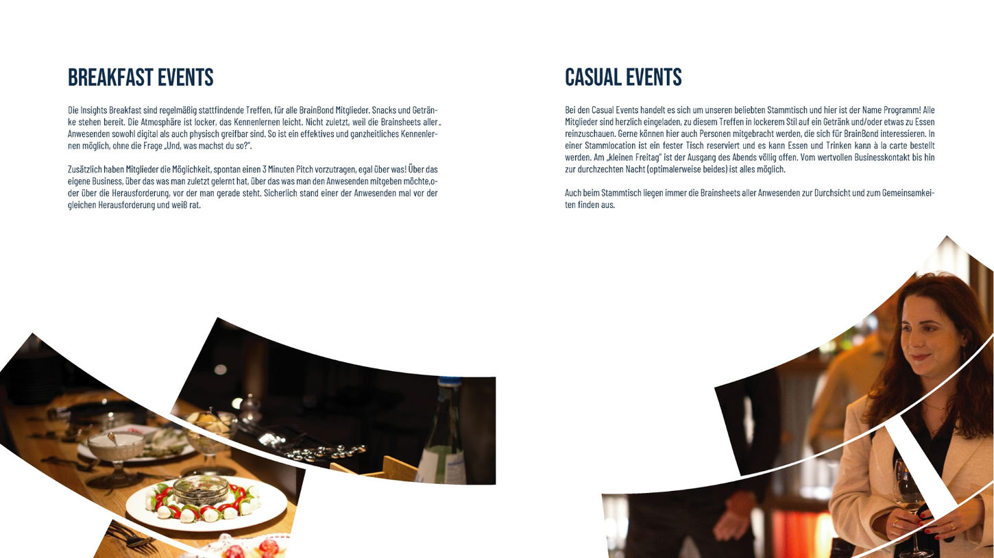 Wir haben für das Startup Brainbond – ein modernes Businessnetzwerk, das durch vielseitige Events und eine lebendige Community überzeugt – eine anspruchsvolle Marke für hochkarätige Businessevents entwickelt.