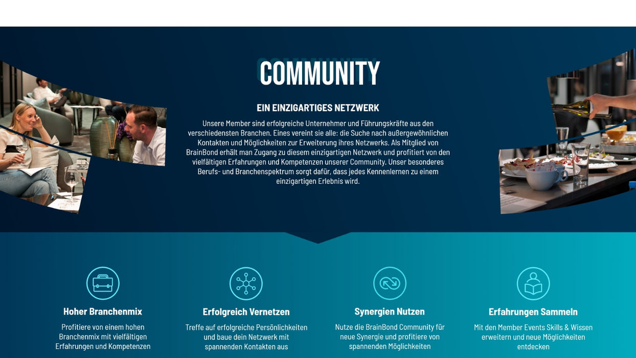 Eine komplett neue Homepage war der nächste Schritt für das junge Startup, um Brainbond auf ein Top-Level zu bringen. Passend zur Dynamik eines Startups fiel die Wahl auf eine schlanke Corporate Microsite mit wenigen Unterseiten. Ergänzt wurde diese durch eine leistungsstarke Datenbank, die eine einfache Verwaltung von Events und Community-Content ermöglicht.