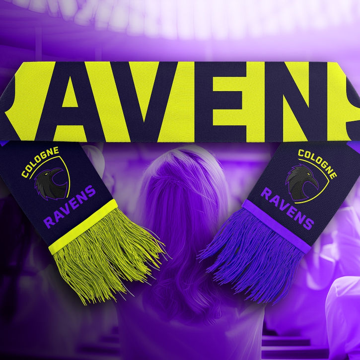 Die Ravens haben ein umfassendes Rebranding von uns bekommen. Das neue Logo behält zwar die bekannte Profilansicht bei, präsentiert sich jedoch in einer dynamischeren und moderneren Komposition. Freigestellte Elemente betonen den zeitgemäßen Look und verleihen dem Design mehr Leichtigkeit. Anstelle von Gold kommt nun ein sportliches Neon-Gelb zum Einsatz. Das klassische Schwarz wird durch ein tiefes Violett ergänzt, das an die natürliche Färbung von Rabengefieder erinnert. Das Logo kann auch in einer vollständig weißen Variante verwendet werden.
